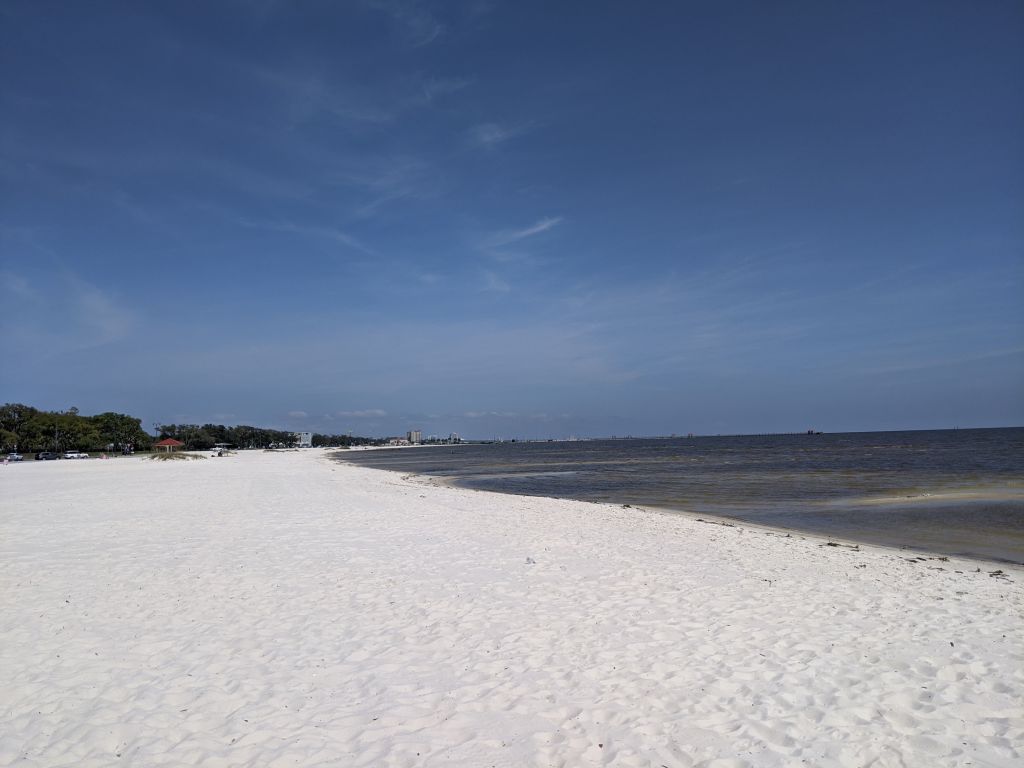 Gulfport, Mississippi is only about an hour and a half from New Orleans but feels like a different planet. I left New Orleans just as the Coronavirus was getting very bad there; Gulfport looked like a good place to do some self quarantining. I knew all the businesses would be closed or at least severely limited so I wouldn’t get the full experience of the place, but their gorgeous beaches looked like a place I could enjoy socially distancing myself. If I had to endure weeks of solitude I might as well do it in a place with abundant natural beauty.