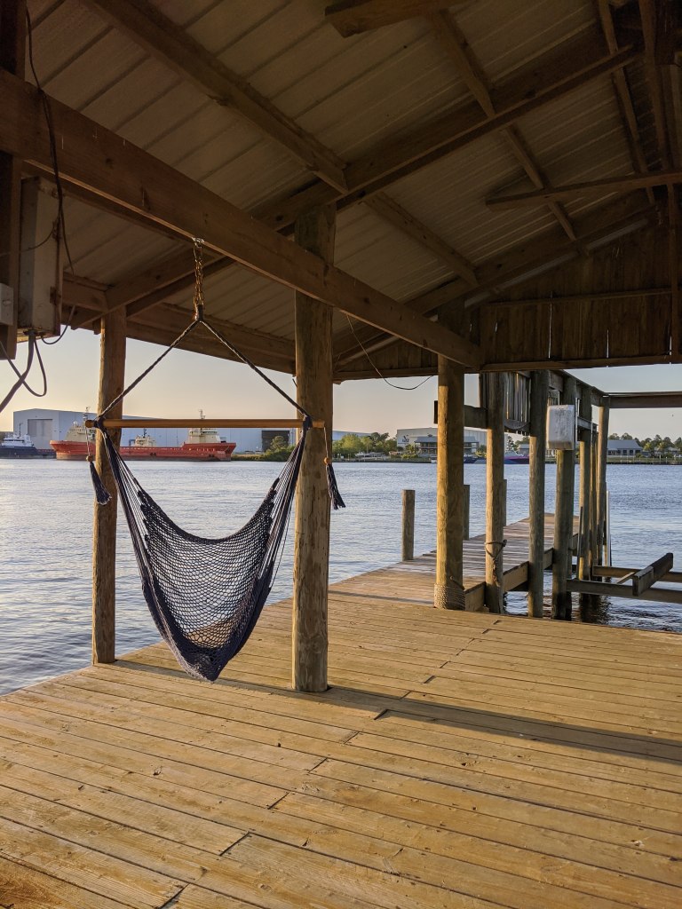 The first place I stayed in Gulfport was an Airbnb right on Bayou Bernard, about 10 minutes from the beach. It had gorgeous bayou views, interesting wildlife, and hammock swings I could spend all day swinging in. It also had Billy, who I also called Bayou Cat, the resident cat who is so friendly he will not hesitate to jump into your lap without warning.