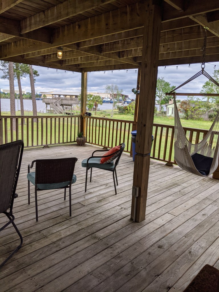 After a week at the bayou house, I had to move to a larger place with a full kitchen: enter the Blue Cottage. This place was further from the beach, but considering the beach closed after my second weekend here, it didn’t really matter anymore. It had a pretty pond in the back with a couple of resident geese.
