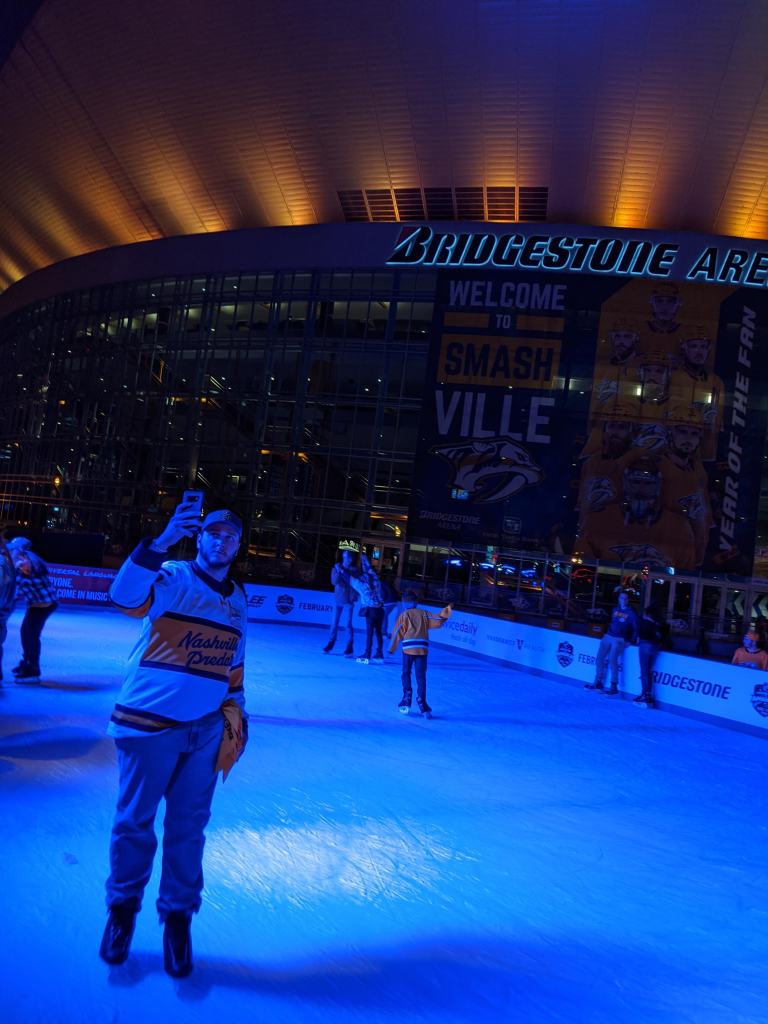 Bridgestone Arena has a small ice rink out front where you can rent skates and go skating and I could not resist the opportunity.